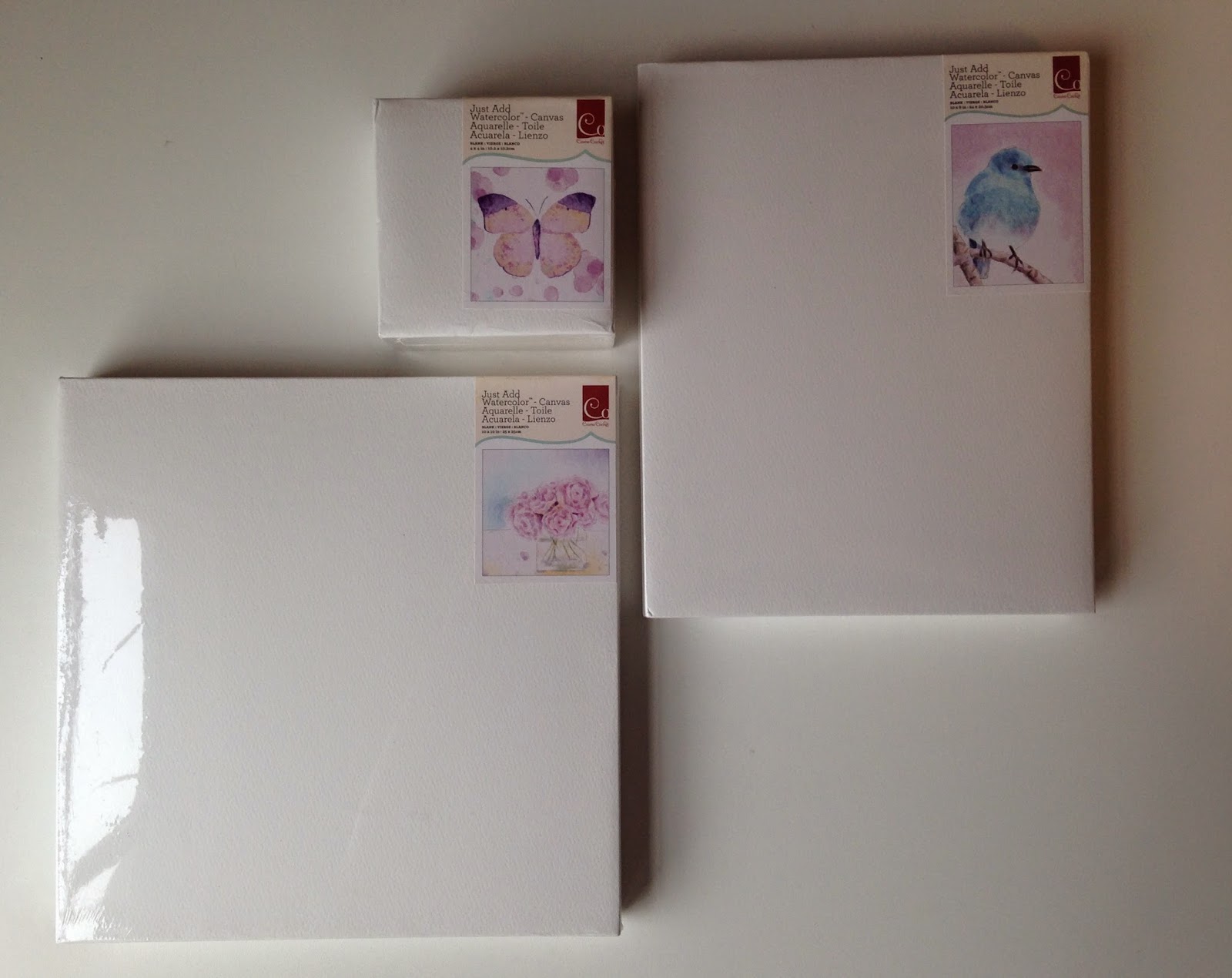 We also recently got in watercolor canvases! These are mostly just blocks wrapped with watercolor paper, ready to hang. Since the paper isn't of a heavy weight, its best to not do a heavy wash. Less water is best for these.